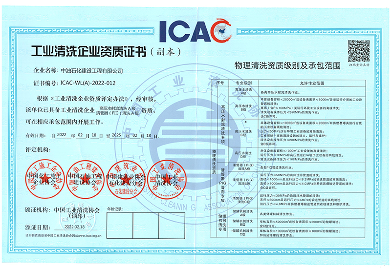 工業(yè)清洗企業(yè)資質(zhì)證書(shū)